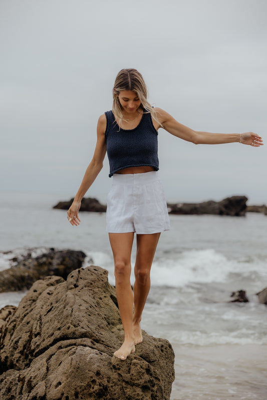 Drift Tailored Linen Shorts // White